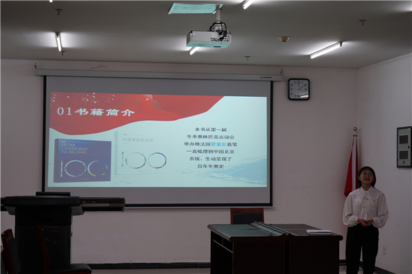 朱钰、周洪波、徐乙鸿、谭梦芹、李娜等5位同学朗诵了《精神的力量:航天精神引领中华民族探索浩瀚宇宙》书中的精彩篇章,他们深情而激昂地回顾航天事业的奋斗历程,展现了航天人奋力奔跑、勇敢逐梦的精神力量。万姝瑞、郭竹、陈海蓉、王健宇、雷焦焦、段陈言等6位同学分享了《习近平讲党史故事》中的精彩故事,他们演绎了周恩来同志写下《我的修养要则》的历史场景,让大家体会到中国共产党人的崇高精神和坚定信念。胡馨月、代青、陈欣、谭梦芹、王培佳、陶春莲、包沅鑫、孙慧萍等8位同学以话剧形式演绎了《觉醒年代》书中李大钊、陈独秀等先进革命知识分子在国家蒙辱、人民受难下的惊天觉醒,展现了中国共产党成立之初的坚定决心和初心使命。廖春琴同学用PPT讲述形式推荐《从夏蒙尼到北京:冬奥百年》一书,讲述了百年冬奥史上传奇人物的励志故事,展现追求“更快、更高、更强、更团结”的体育精神和冬奥百年对中国和世界的历史意义。