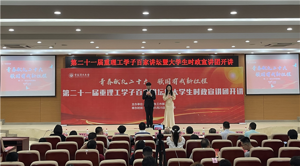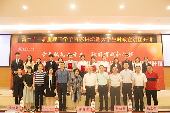5月25日19:00,第二十一届重理工学子百家讲坛决赛暨大学生时政宣讲团开讲活动在重庆理工大学成功举行。重庆理工大学党委常委、副校长廖林清以及学校相关职能部门的领导出席活动并担任比赛评委。各学院党委负责人、学办老师、选手指导老师和学生代表共同参加了本次活动。