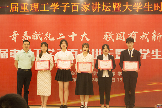 校党委常委、副校长廖林清和出席活动的其他评委嘉宾分别为获奖同学颁发了荣誉证书;党委学生工作部部长、学生处处长赵毅为学校大学生时政宣讲团成员颁发了聘书。