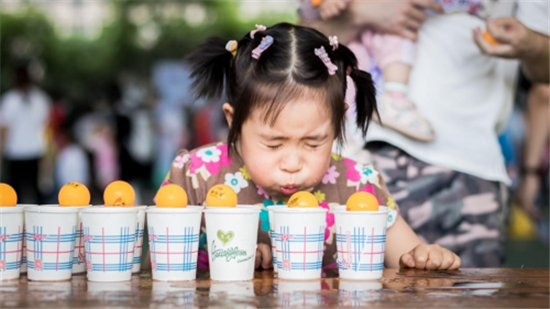 下一关为“水上乒乓球”。吹掉水杯上的乒乓球,按照吹落的球数计数。小朋友们微嘟着嘴吹着乒乓球,乒乓球也一个接一个的落下。小朋友们在参与过程中体验到运动的趣味性,家长们也用心指导,提醒他们在比赛过程中要细心、耐心和专心。