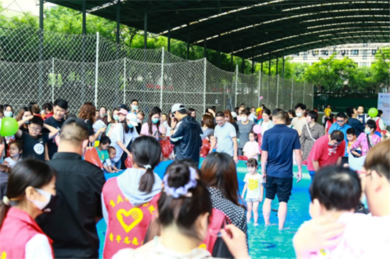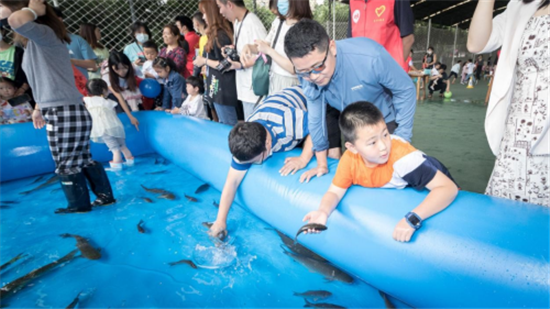 分享结束后,马上进入到家庭竞技比赛中,为响应疫情防控要求,60组家庭分为两大组共6小队,在两个时段错峰进行。现场共设“手忙脚乱”、“两人三足”、“水上乒乓球”3个闯关游戏和1个终极环节—“捕鱼”活动,每个闯关游戏通关后都将获得30秒捕鱼时长,终极捕鱼时长为三个游戏累计时长。