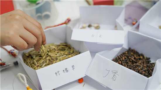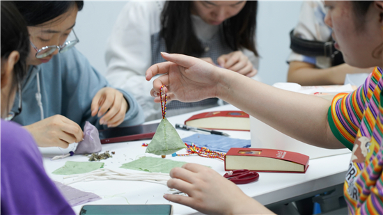 端午系囊,幸福安康。端午节前夕,西南大学在学生生活园区组织开展香囊DIY教学体验活动,吸引了不少大学生前来参加。