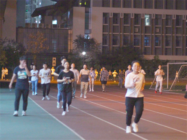 活动形式丰富多样。活动期间每晚九点到十点,工作人员分别在花溪校区和两江校区的田径场主席台处布置打卡点,通过冰墩墩打卡集章的方式来激励师生坚持运动。同时,志愿者定点为参与师生讲解科学运动知识,并设置集体热身、配速员领跑和师生自由点歌等环节,让师生在安全和愉悦的环境中充分享受运动的快乐和青春的活力。