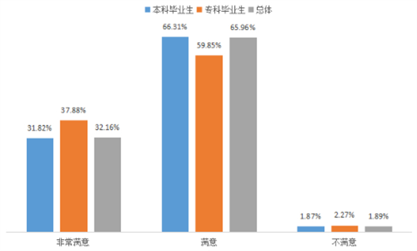 2021届毕业生对学校的总体满意度为98.11%,均值4.10(5分制),偏向“非常满意”。其中,选择“非常满意”、“满意”的毕业生人数占该题答题总人数的比例依次为 32.16%、65.96%。