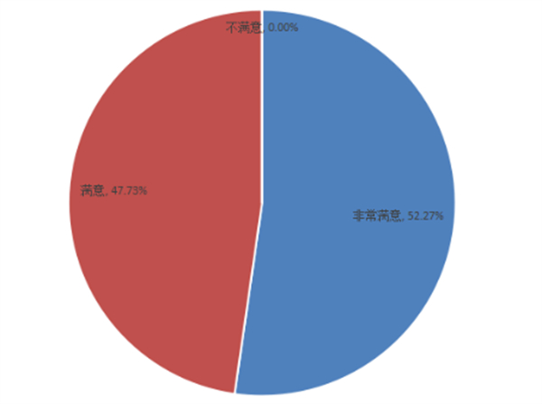 用人单位对2021届毕业生的工作表现的满意度为100.00%,其中评价为“非常满意”的占比相对较高,为52.27%。