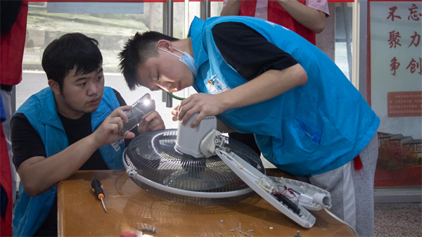 当天下午3时,义务维修小分队的学生志愿者们到达活动现场后,闻讯而来的离退休教师们陆续从家中拿来了坏掉的电热水壶、电磁炉、电风扇、吹风机等小家电。负责维修的学生志愿者们认真查找故障原因,熟练地拆卸螺丝、检测电阻电容、更换零件、重装测试,细心地修理每一部小电器,竭尽所能解决电器故障。同时向老师们介绍如何安全使用家用电器、节约能源,避免在使用过程中因不恰当地使用方法造成伤害及损失。