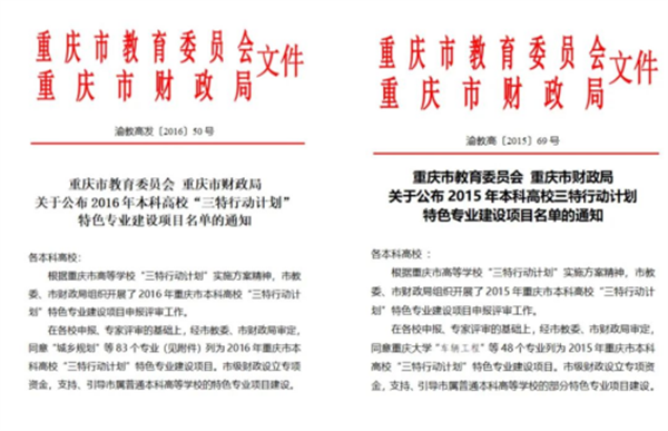 重庆市本科高校“三特行动计划”自2013年贯彻实施以来,旨在引导高等学校进一步明确本科人才培养定位,推动高校内部协同创新和产学研结合,走内涵发展、特色发展的道路,促进高等教育规模、结构、质量、效益协调发展,全面提高我市高等教育质量。