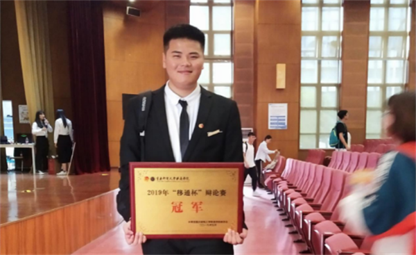 “在移通,一场场辩论赛的历练让我逐渐蜕变为一名合格辩手,也逐步成为团队里的领导者,从前在学长们身后的人也终于成了为学弟学妹们遮风挡雨的人,责任,让我深知坚持理想也需要勇气。2019年,一切辩论赛全部停滞,但我知道,我不能停下!我得向前!必须向前!”疫情缓和,回到学校的刘方正,辩论的生涯更加丰富多彩,成为了校园内各大辩论赛的评委,承担了更多的辩论赛培训,还受邀参与兄弟院校山东科技学院的辩论培训。