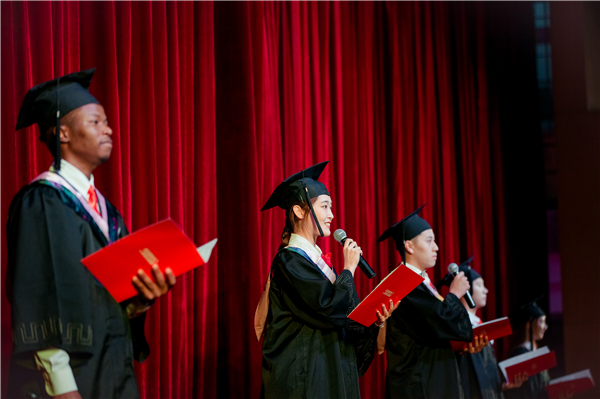 校友代表廖洪海回顾了在母校求学的青春时光,并鼓励毕业生面对挫折勇于挑战,充满自信、坚持学习、踏实肯干。他希望毕业生们在未来人生中努力奋斗,为母校增光添彩。