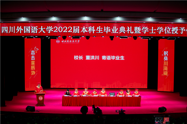 在全场同唱校歌的歌声中,四川外国语大学2022届本科生毕业典礼落下帷幕。祝福毕业生们在未来的人生旅途上“志去星辰外,躬身川海间”!