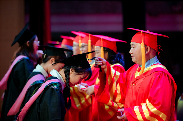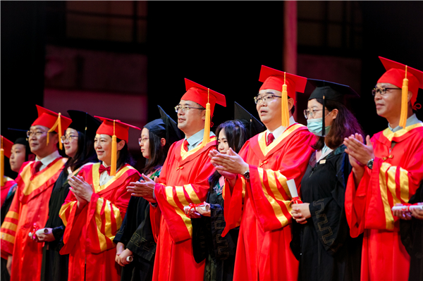 随后,2022届学士学位授予仪式举行,校领导为现场700余名毕业生拨穗、正冠,送上寄语和希望。