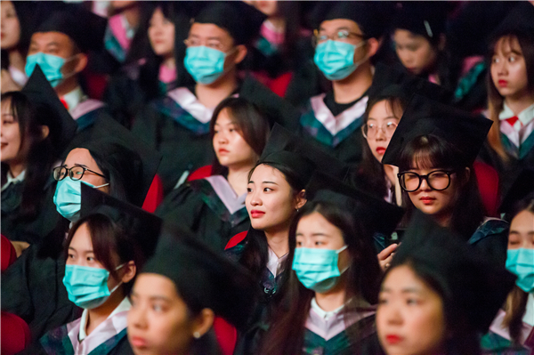 典礼在毕业纪念MV《和光同尘》中拉开帷幕。随后,毕业生和老师、辅导员、学弟学妹、食堂和宿舍工作人员快闪同唱毕业歌曲串烧。“毕业后没有了门禁,同学们记得早点回家,早点休息,按时吃饭……”在校领导、师长们殷切的叮咛和温暖的祝福中,毕业生们热泪盈眶。
