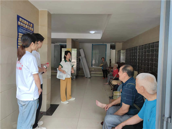 7月4日早上9点,社会实践服务团成员们跟随社区工作人员参加每周一工作早会,倾听社区周书记做上一周工作总结、本周工作计划,并强调本周工作重点。在顶岗工作过程中,社会实践服务团成员们通过登记渝北区城镇绿色家庭自评表,了解社区居民对生态文明素养、节约能源资源、践行绿色消费、提倡绿色出行等方面的看法和关注度。鉴于社区居民老龄化程度较高,社会实践服务团成员们跟随工作人员上门入户收集自评表,与居民促膝交流,增强与居民之间的情感纽带。通过对工作人员访谈,社会实践服务团成员们了解到,大家普遍意识到,引入智慧社区不仅能减轻社区工作者的负担,也能为当地居民的生活提供更多便利。他们认为,创建智慧社区不仅是社区的工作,更需要政府、社会及青年大学生的支持和帮助。