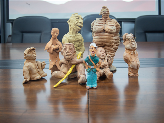 活动中,刘强还为志愿者们讲解了泥塑的具体制作方法,并向大家展示了自己的泥塑作品,介绍了一件件泥塑作品背后的故事。志愿者们纷纷表示:“这些泥塑作品充满了现实感,生动形象的展示了老百姓的生活,形态夸张、表情丰富,堪称一绝!”