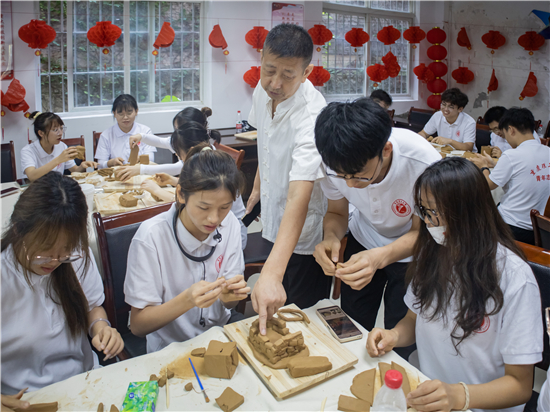 习近平总书记在山西考察调研时指出:“历史文化遗产承载着中华民族的基因和血脉,不仅属于我们这一代人,也属于子孙万代。要敬畏历史、敬畏文化、敬畏生态,全面保护好历史文化遗产”。为进一步做好非遗文化传承,筑牢精神之基。2022年7月8日,重庆理工大学电气与电子工程学院暑期“三下乡”传承文化传承团前往巴南区鱼洞街道解密鱼洞著名民间工艺刘氏泥塑、鱼洞乱针绣,听非遗传承人讲述他们的故事。