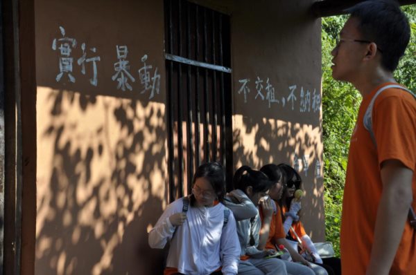 行路的后半程,队员们都气喘吁吁,汗珠如雨下,衣服湿了,交谈议论少了。停下来休息时,偶有路过的当地的村民,对枫香树团队重走长征路的活动表示出赞许,认为青年人有这样的意识、行动、锻炼值得肯定;还有住在周围的村民主动为枫香树团队的队员们端上一碗老荫茶,送上家种的玉米,这些都给与了队员们无穷力量,尽管大家已筋疲力尽,但得到了鼓励,又一次坚定了意志,最终,队员们一鼓作气,在接近中午的时间,披着满身灿烂的阳光,枫香树团队成功结束了石壕镇长征之行。