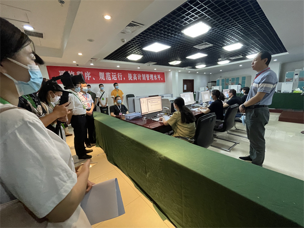 在工作人员的引导下,参观人员在录取场有序参观了系统保障、计划投档、数据系统维护、录检政策、文秘宣传各组。各组均在严密规范下有条不紊地进行录取工作,确保数据安全并准确、把握录取进程,共同确保高考录取工作运转有序。