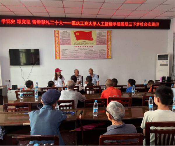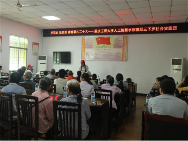 为推动党史学习教育走深走实,进一步引导和帮助广大青年学生上好与现实相结合的“大思政课”,重庆工商大学人工智能学院市级重点团队“以智兴农”实践团联合全国样板党支部——人工智能学院学生一支部于7月18日至7月21日深入忠县磨子土家族乡石梯村、百合村、竹山村,围绕“党史学习教育”开展了1场集中宣讲和35场分散宣讲,覆盖280余名当地居民。