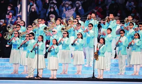 北京2022年冬残奥会开幕式上,重庆市特殊教育中心盲童乐手演奏国际残奥委会会歌。资料图片