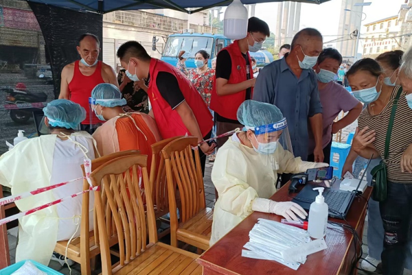 8月24日,重庆财经学院教师党员阳圆作为志愿者参加了沙坪坝区虎溪街道复兴社区全员核酸筛查,负责社区核酸筛查场地布置、咽拭子拆分、核酸检测管贴码以及检测过程中查验渝康码、核酸码和人群分流等。阳老师说到:“自己在学生时代就比较喜欢参加志愿者活动,如参加了关爱留守儿童、空巢老人、70周年大阅兵志愿者活动等,23日看到社区在发布招募志愿者,就和我弟弟妹妹们一起报名参加了此次核酸筛查志愿者活动,希望能够尽一份自己的绵薄之力,贡献一份力量。”