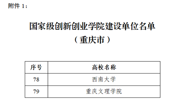 近日,重庆文理学院入选首批国家级创新创业学院建设单位。根据《教育部办公厅关于公布国家级创新创业学院、国家级创新创业教育实践基地建设名单的通知》(教高教函[2022]22号),经自主申报、市教委组织专家评审推荐、教育部审核,重庆文理学院从30余所高校脱颖而出,成功入选。据悉,重庆文理学院是重庆市唯一入选的市属高校,重庆市仅有西南大学和重庆文理学院两所高校获批此称号。