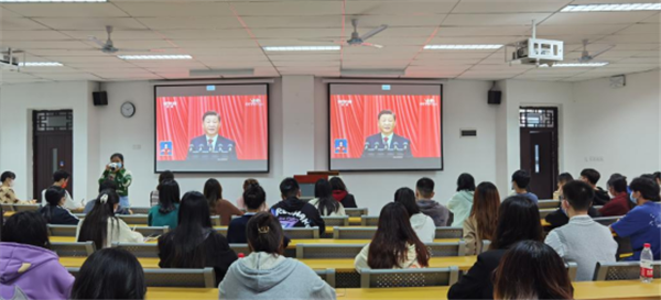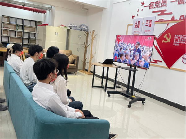 各党总支带领支部师生在各会议室、教室、书院功能室一同收看直播。