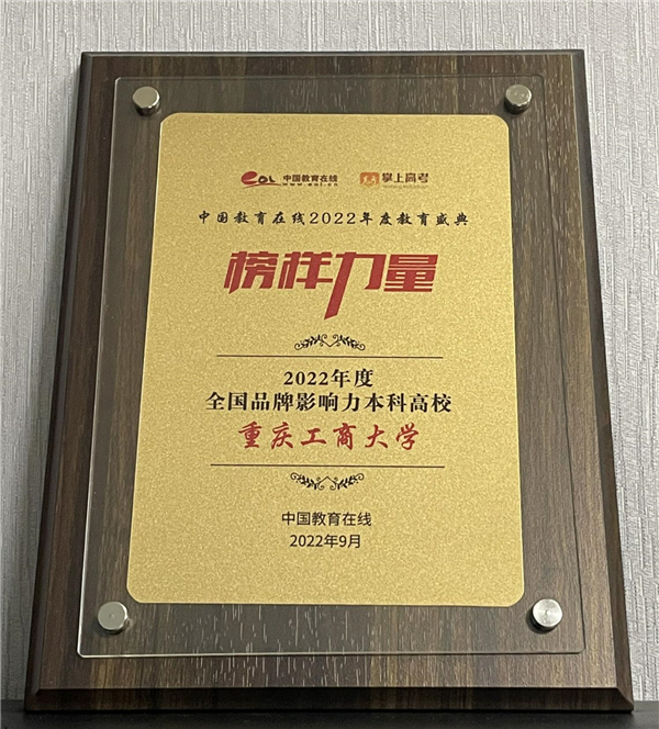 近日,必威体育登录网址 “榜样力量·2022年度教育盛典”评选获奖名单揭晓,重庆工商大学获“2022年度全国品牌影响力高校”荣誉称号。
