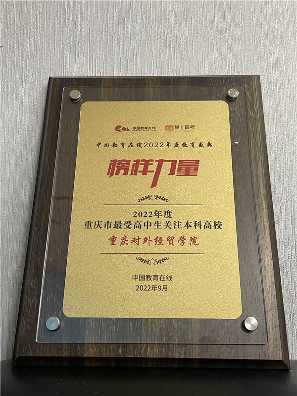 近日,必威体育登录网址 “榜样力量·2022年度教育盛典”评选获奖名单揭晓,重庆对外经贸学院获“2022年最受高中生关注高校”荣誉称号。