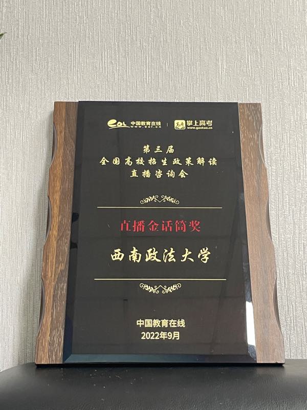 活动经过前期征集、专家会审、综合评审等阶段,西南政法大学从全国众多高校中脱颖而出,获得“2022年度最受中学信赖高校”与“直播金话筒”奖项。这充分体现了学校办学成果得到了社会的广泛认可和高度好评。