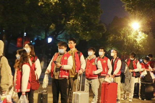 经过两小时紧张准备,晚上8:20,最终确定的119名首批服务社区疫情防控的学生志愿者队伍在学校四教前集合完毕,整装待发。8:30,四个社区的工作人员陆续抵达学校北校门。在完成工作交接作后,全体志愿者逐一蹬车。