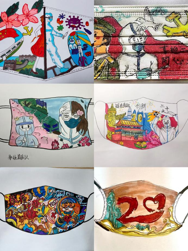 本次活动分为两种设计方式:一是以不破坏口罩防疫为基础,对实物口罩进行绘画、贴纸、印制等各种设计,充分发挥想象对其进行改造;二是利用白纸进行绘画、贴纸、印制等各种设计口罩。在作品创造出来后,同学们需用一百字到二百字的优美语言结合自身设计理念论述作品的灵感及创意性。此次口罩设计大赛,让同学们自行改造,是对能动性的鼓励;不破坏防疫功能,是对抗疫的重视,也是创意与防疫的双向奔赴。自活动开展以来,财富管理学院同学们积极响应,踊跃报名参与。其中,蓝天守卫队以助力重庆疫情为出发点,运用志愿者、洪崖洞、火锅、校徽等元素,将重庆特色与抗疫精神完美融合,赋予口罩新的生命力,充分展现出我院学子独具匠心的创造力和积极乐观的疫情生活。