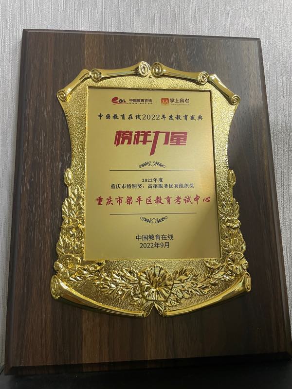 活动经过前期征集、专家会审、综合评审等阶段,重庆市梁平区教育考试中心获得“2022年度高招服务优秀组织奖”荣誉称号。