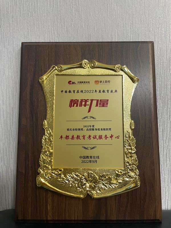 活动经过前期征集、专家会审、综合评审等阶段,丰都县教育考试中心获得“2022年度高招服务优秀组织奖”荣誉称号。