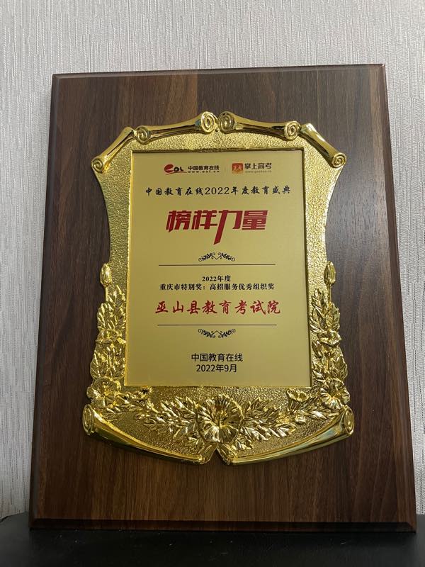 近日,必威体育登录网址 “榜样力量·2022年度教育盛典”评选获奖名单揭晓,巫山县教育考试院获“2022年度高招服务优秀组织奖”荣誉称号。