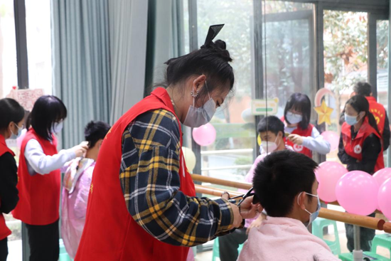 “我的头发已经太长了,还好有学校这次的志愿服务,解决了我的大难题。”