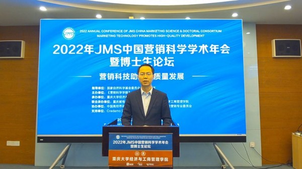 12月16日-18日,为期三天的2022年JMS(《营销科学学报》)中国营销科学学术年会暨博士生论坛在重庆大学以线上线下的方式举行。国内外60余所高校、数百位专家学者与博士生们相聚云端及线下,围绕“营销科技助推高质量发展”这一主题,共同探讨市场营销的理论前沿,分享最新研究成果,在线参会人数累计达1.8万人次。重庆大学副校长李剑,《营销科学学报》主编、清华大学经济管理学院党委书记陈煜波教授,重庆大学经济与工商管理学院院长杨俊教授出席开幕式并分别致辞,国家自然科学基金委管理科学部处长任之光对中国营销科学的发展给予了高度评价。