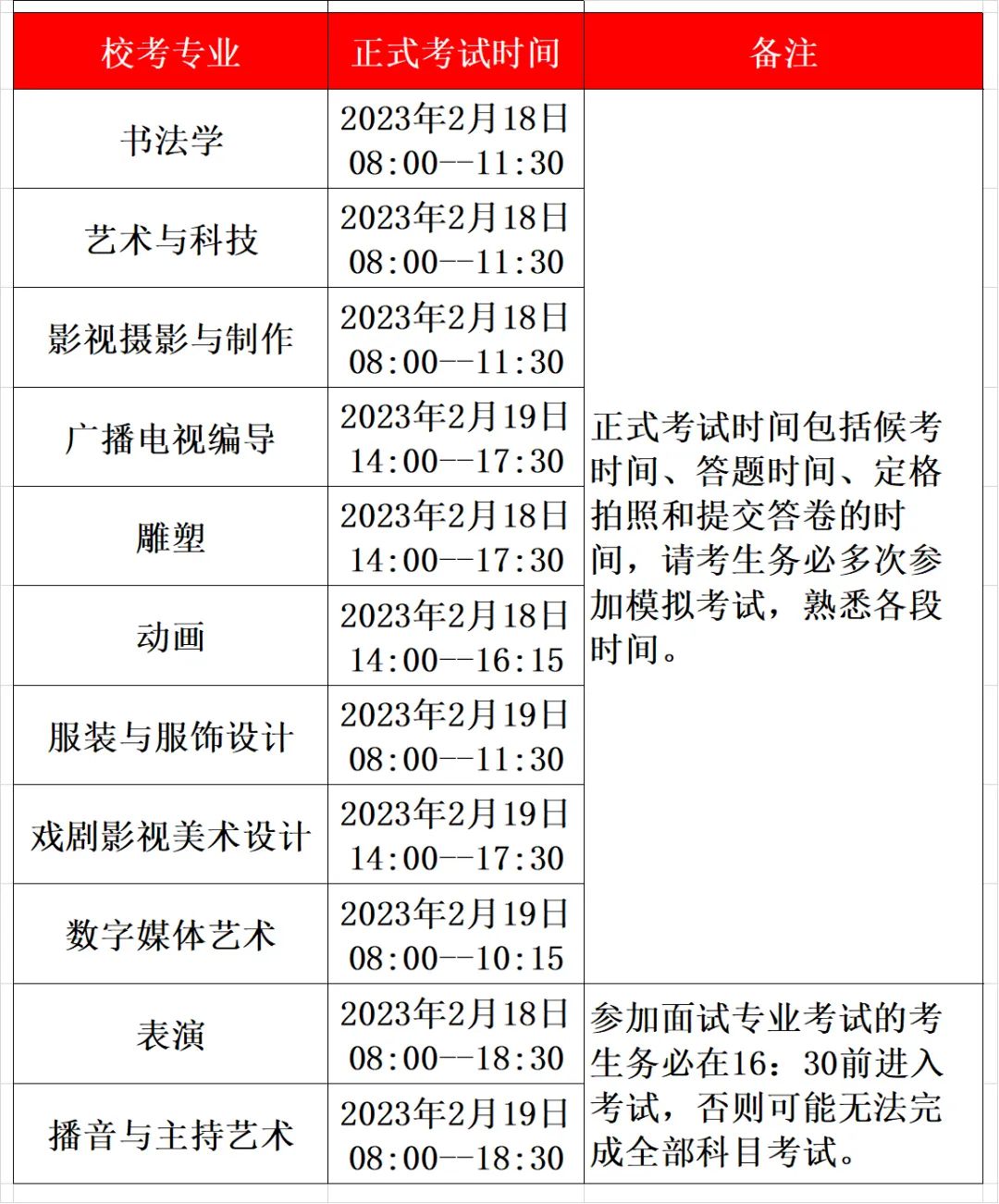 根据《教育部关于进一步加强和改进普通高等学校艺术类专业考试招生工作的指导意见》(教学〔2021〕3号)和《教育部办公厅关于做好2023年普通高校部分特殊类型招生工作的通知》(教学厅〔2022〕8号)等文件精神,统筹做好疫情防控常态化形势下考试招生,经学校党政联席会研究决定,2023年艺术类专业校考采用线上考试。