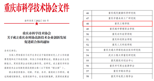 重庆工程学院获批重庆市科协高新技术企业创新发展促进联合体首批成员单位