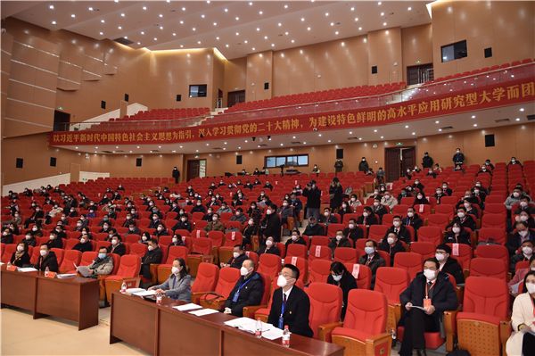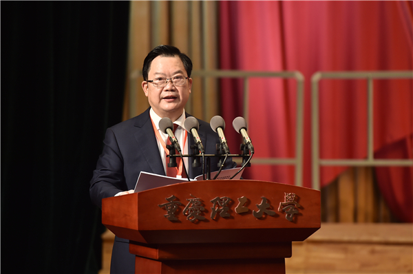 重庆理工大学党委书记康骞代表学校第二届党委作题为《阔步创业新征程 谱写发展新篇章 为建设特色鲜明的高水平应用研究型大学而团结奋斗》的报告。