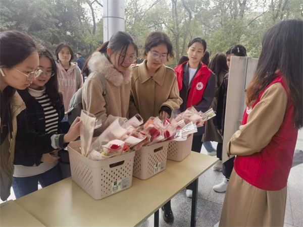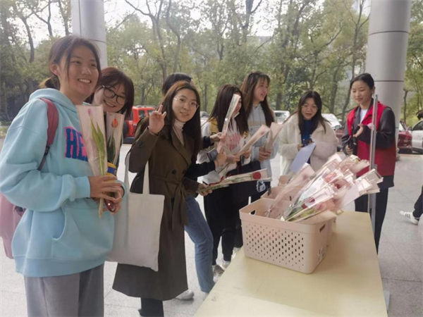 活动现场热闹非凡,大家都对此次活动形式赞不绝口,充满热情。同学们有的选择将鲜花送给辛勤的老师,有的选择将鲜花送给亲爱的朋友,有的选择将鲜花送给同样珍贵的自己……每一朵花都带着最真挚的祝愿,有了最终的归宿。