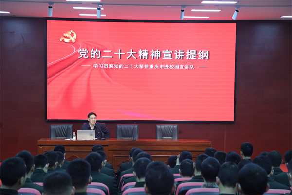 为深刻领悟党的二十大精神所蕴含的丰富内涵,汲取奋进力量,切实把党的创新理论转化为推动工作的强大动力,在重庆机电职业技术大学2020级定向培养军士生,将于本月中旬奔赴部队之际,学校党委书记、督导专员徐益等校领导分别为空军、火箭军和战略支援部队军士生学员作党的二十大精神专题宣讲报告,全覆盖为即将入伍的军士生学员再上一堂别开生面、有意义有深度的思政课。
