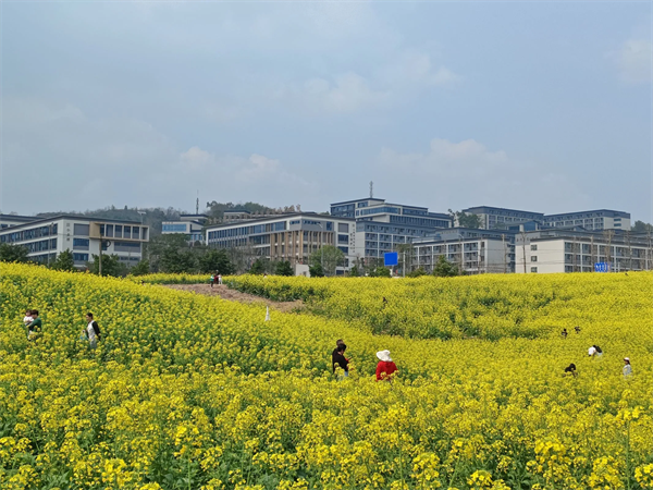 近日,重庆移通学院綦江校区首届油菜花节在花田顺利开幕,活动现场吸引了众多师生及周边居民积极参与踏春采风、打卡拍照。移通学院附近的百亩良田在綦江区通惠街道办事处及重庆市柏雀林农业开发有限公司的改良下变身为百亩油菜花田,学校借此契机迅速开展校企、校地联动,为綦江校区的学子“承包”百亩春田。