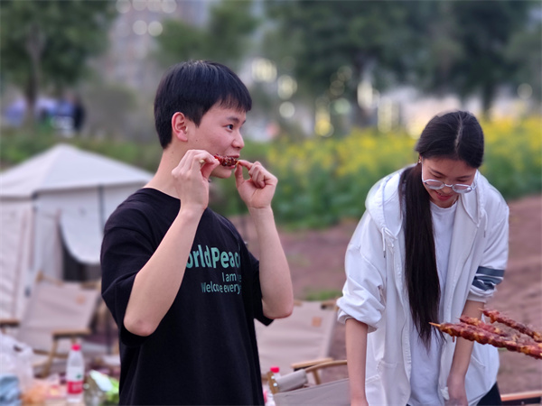 帐篷、烤架、食材、调料,外加当代大学生生活的最高配置——三两好友,在油菜花田中开启一键快乐模式,享受舒适的校外田园风光。蝴蝶环绕在身边,朋友在身边欢笑,躺在帐篷里闻着油菜花香,静静的享受这一刻的快乐。