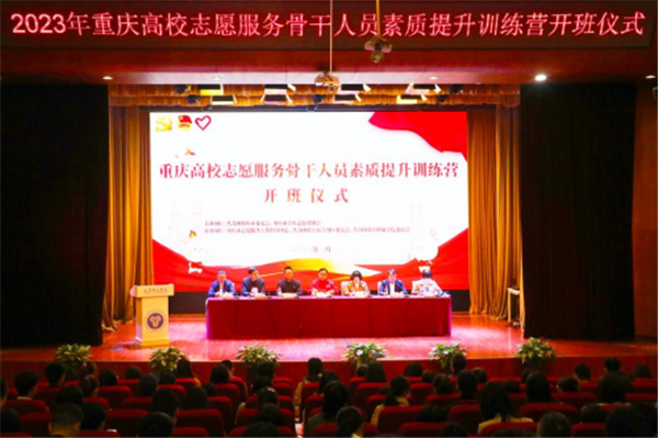 为深入学习党的二十大精神,进一步落实高校团组织的工作部署,推动青年志愿服务融入高校“三全育人”格局,提升高校团组织“三力一度”,3月21日上午,由团市委、市青年志愿者协会主办,市志愿服务工作指导中心、团合川区委、重庆移通学院团委共同承办的2023年重庆高校志愿服务骨干人员素质提升训练营在重庆移通学院下里巴人剧场顺利开班。团中央青年志愿者行动指导中心党委委员、副主任熊剑,文化宣传处副处长张倩倩,团市委副书记黄永宜,合川区委副书记谢东,重庆移通学院校党委书记何先刚,校党委副书记、副校长周伟,市志愿服务工作指导中心党支部书记、主任龙江出席,团市委、合川区、移通学院相关单位、职能部门负责同志,以及全市61所高校志愿服务骨干人员参加。开班式由团市委副书记黄永宜主持。