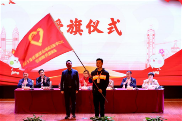 随后,合川区委副书记谢东为2023年重庆高校志愿服务骨干人员素质提升训练营学员代表授旗。来自西南大学的志愿服务骨干刘丹作为学员代表进行表态发言。