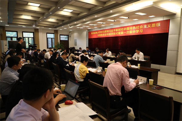 4月25日,重庆理工大学学习贯彻习近平新时代中国特色社会主义思想主题教育读书班开班式在花溪校区明德楼400会议室举行。举办这次读书班,是贯彻落实党中央和市委关于主题教育的统一部署,也是开展主题教育的“第一课”,从校级领导干部做起,沉下心来通读、精读、研读原著原文,进一步学深悟透习近平新时代中国特色社会主义思想,切实增强用党的创新理论武装头脑的政治自觉、思想自觉、行动自觉,进而把伟大思想转化为坚定理想、锤炼党性和指导实践、推动学校工作的强大力量。