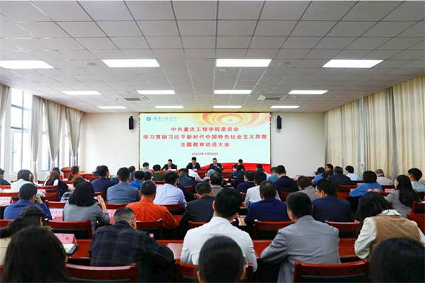为深入贯彻落实党中央及市委、市委教育工委关于开展学习贯彻习近平新时代中国特色社会主义思想主题教育的有关部署和要求,4月26日,重庆工程学院召开学习贯彻习近平新时代中国特色社会主义思想主题教育动员大会,深入学习贯彻习近平总书记在主题教育工作会议上的重要讲话精神,认真落实市委教育工委市教委主题教育动员大会精神,动员部署重庆工程学院主题教育工作。会议强调,要准确把握“学思想、强党性、重实践、建新功”的总要求,把“理论学习、调查研究、推动发展、检视整改”贯通起来,有机融合、一体推进。要以“七个坚持”为抓手,紧密结学校实际,创新方法、丰富载体,高效完成“五四五四一”工作内容,即理论学习五种基本形式、调查研究四个主要环节、推动发展五大专项行动、检视整改四项重点要求、巩固成果一套长效机制,扎实推动学校主题教育走深走实。