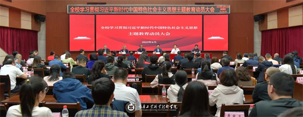 4月25日上午,重庆对外经贸学院在9101报告厅召开学习贯彻习近平新时代中国特色社会主义思想主题教育动员暨工作部署大会,深入学习贯彻习近平总书记在主题教育工作会议上的重要讲话精神,认真落实全市主题教育动员大会精神。会议强调,学校各级党组织和干部同志们要把主题教育抓好、抓实。着力解决“理论学习、政治素质、能力本领、担当作为、工作作风、廉洁自律”6个方面的突出问题,全面落实立德树人根本任务,在促进高等教育发展和培养新时代应用技术型人才的实践中凝心铸魂、锤炼品格、树立新风。