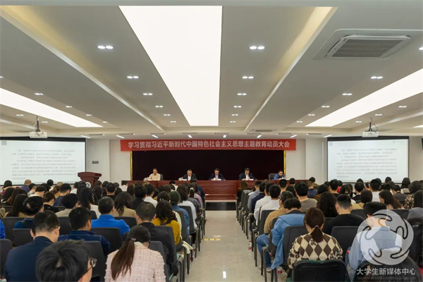 为深入贯彻落实党中央、市委及市委教育工委主题教育动员大会精神,全面落实市委教育工委主题教育工作安排,动员部署学校主题教育工作,4月27日下午,重庆财经学院在学术报告厅召开学习贯彻习近平新时代中国特色社会主义思想主题教育动员大会。会议指出,要更加紧密团结在以习近平同志为核心的党中央周围,在市委教育工委的坚强领导下,在市委教育工委巡回指导二组的有力指导下,高站位、高标准、高起点、高质量开展主题教育,推动习近平新时代中国特色社会主义思想走深走实,奋力交出改革发展稳定高分报表,努力为社会主义现代化新重庆教育事业发展作出学校新的更大贡献!
