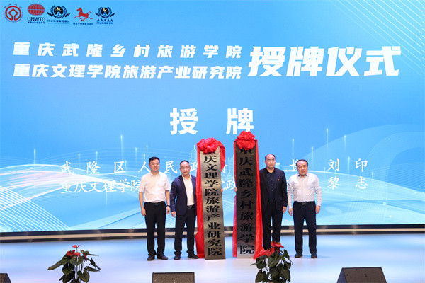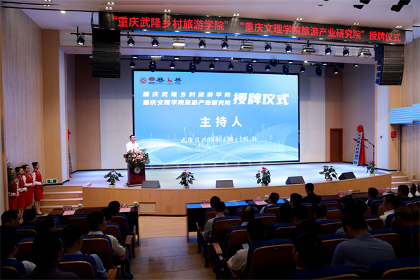 5月24日上午,重庆文理学院与武隆区人民政府联合共建的重庆武隆乡村旅游学院、重庆文理学院旅游产业研究院授牌仪式在武隆区职教中心举行。武隆区委书记何庆、区长左军、副区长刘印、区政协副主席刘壮,学校党委书记蔡家林、副校长陈中祝,市委主题教育第18巡回指导组领导出席授牌仪式。武隆区各区级部门、乡镇街道负责人以及职教中心部分师生,重庆文理学院相关部门负责人参加活动。授牌仪式由武隆区政协副主席刘壮主持。